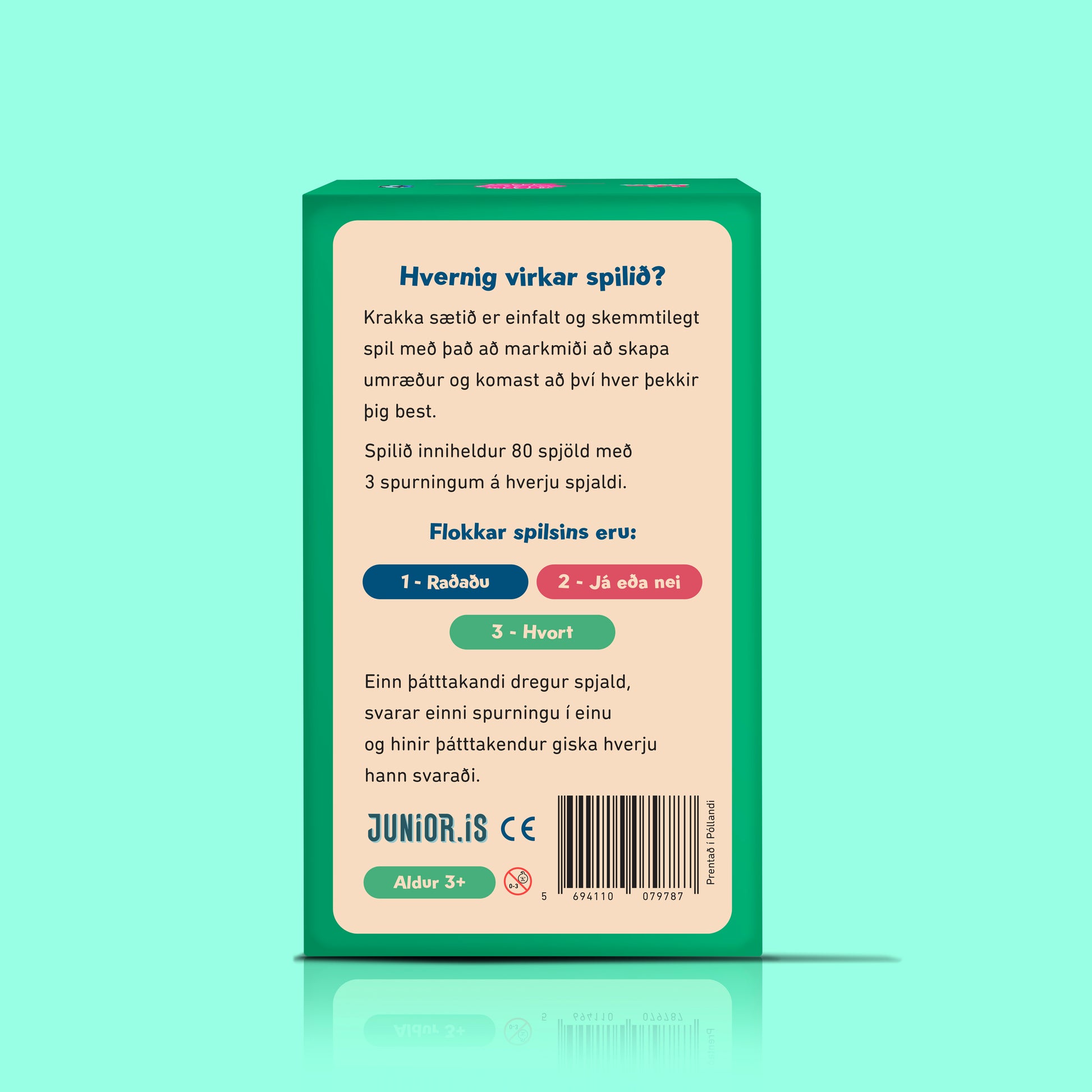 Krakka sætið er einfalt og skemmtilegt spil með það að markmiði að skapa umræður og komast að því hver þekkir þig best.